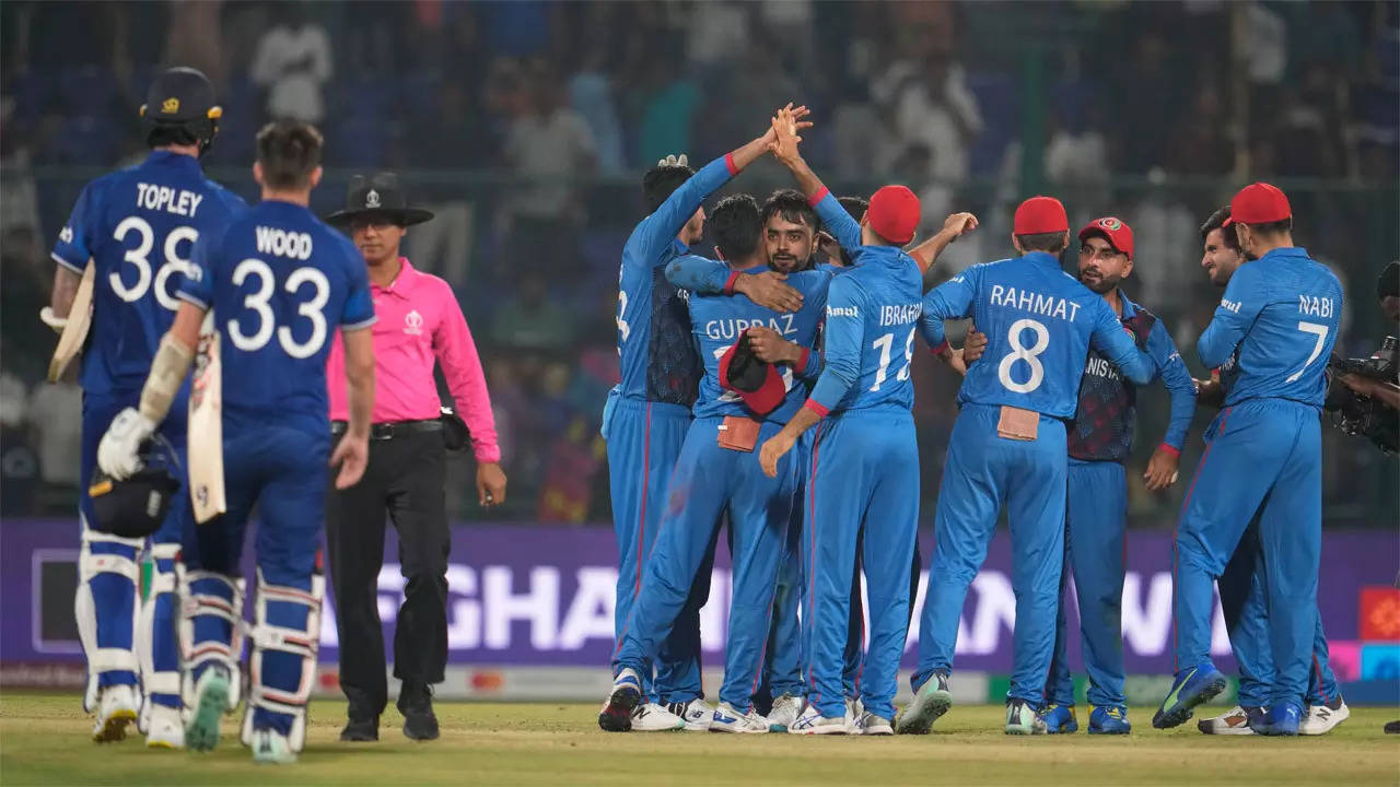 Rahmanullah Gurbaz’s 57-ball 80 onslaught was followed by Mujeeb Ur Rahman’s all-round performance as Afghanistan produced one of the biggest upsets of the ODI World Cup, trouncing defending champions and one of the top contenders for the crown, England by 69 runs. With the memorable win, Afghans broke their 14-match losing streak at the marquee tournament. Afghanistan’s other win came back in the 2015 in Australia edition of the tournament against Scotland.