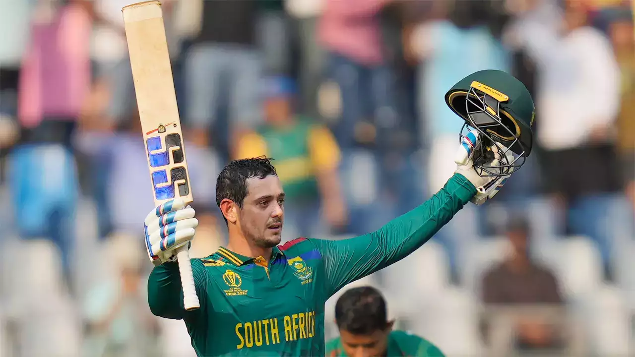 Quinton de Kock continues his sublime touch in the ODI World Cup with his third hundred of the tournament in just five innings. The wicketkeeper batter smashed a brilliant 174 as South Africa piled up 382-5 against Bangladesh at the Wankhede Stadium in Mumbai on Tuesday.