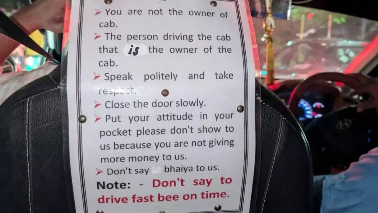 A cab driver’s list of six rules for passengers, including a request to avoid calling him ‘bhaiya,’ has sparked a contentious debate online. While some netizens appreciate his demand for respect, others find the rules too stringent. The guidelines also stress the importance of passengers practicing basic manners during the ride.