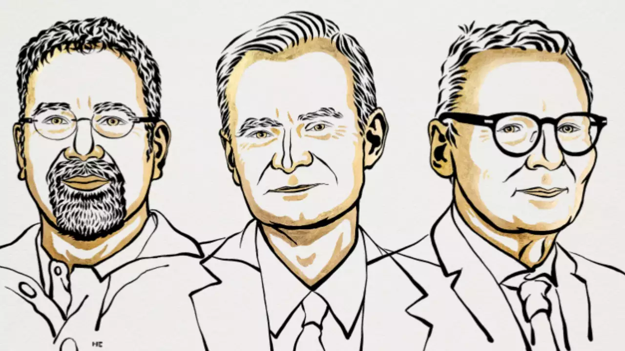 Daron Acemoglu, Simon Johnson, and James A Robinson received the Nobel Prize in Economics for studying how institutions shape prosperity. The Indian laureates include Amartya Sen for his work on welfare economics and Abhijit Banerjee for his experimental approach to alleviating global poverty. The prize, awarded by the Royal Swedish Academy of Sciences, has honored 93 laureates since 1969.