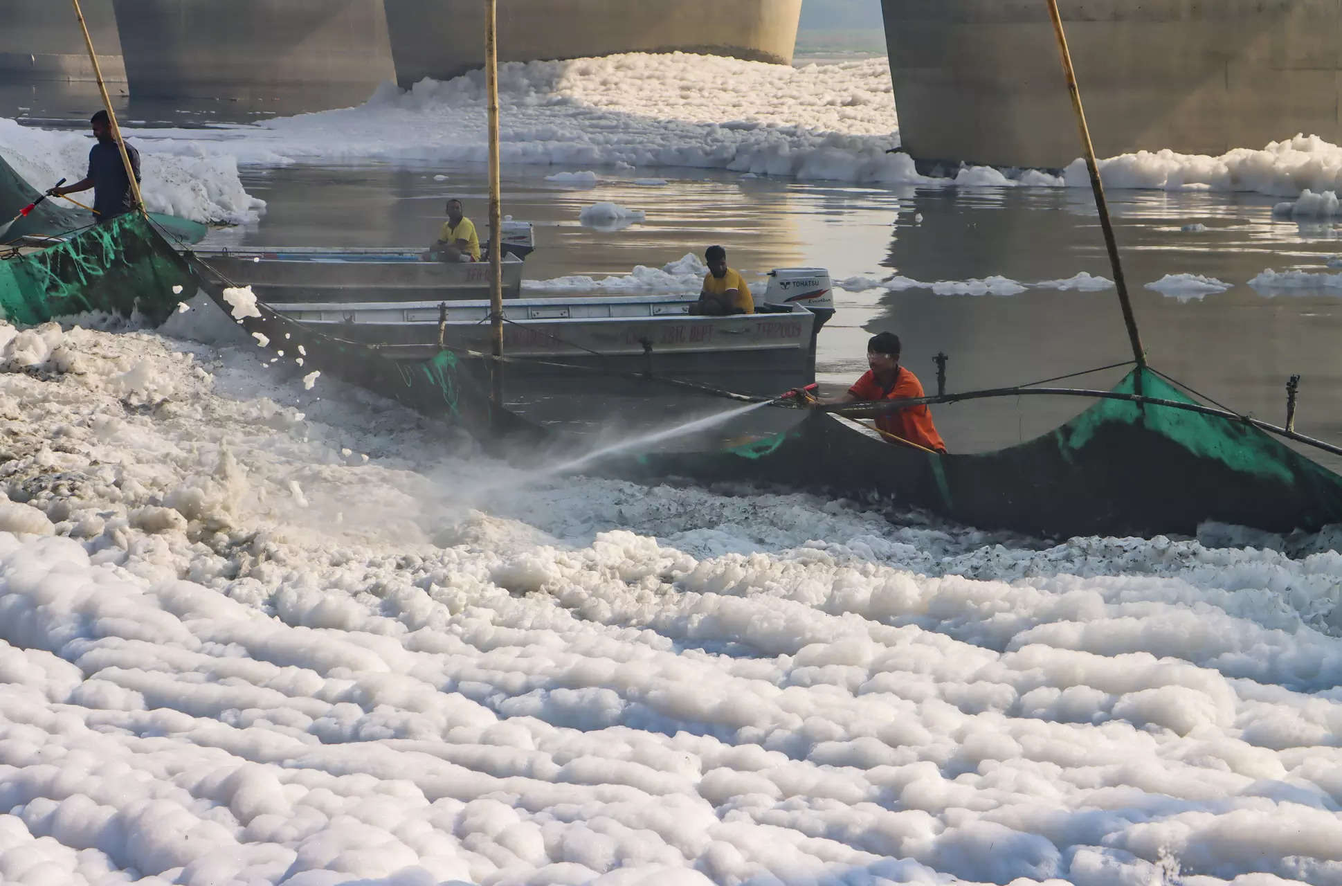 • Toxic foam in Yamuna raises pollution concerns in Delhi ahead of Chhath Puja
