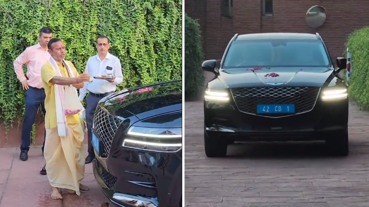 The Korean Embassy in India has added a brand-new Genesis GV80 luxury SUV as its Ambassador’s official vehicle, and held a Pooja ceremony for the car – a ritual typically performed by Indians while purchasing a new car.