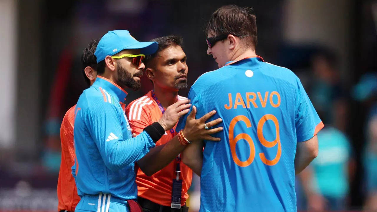England’s popular YouTuber Daniel Jarvis aka Jarvo, who shot into fame back in 2021 for infiltrating three of India’s matches against England, was seen talking to Virat Kohli and KL Rahul before being pushed out of the field by the security personnel.