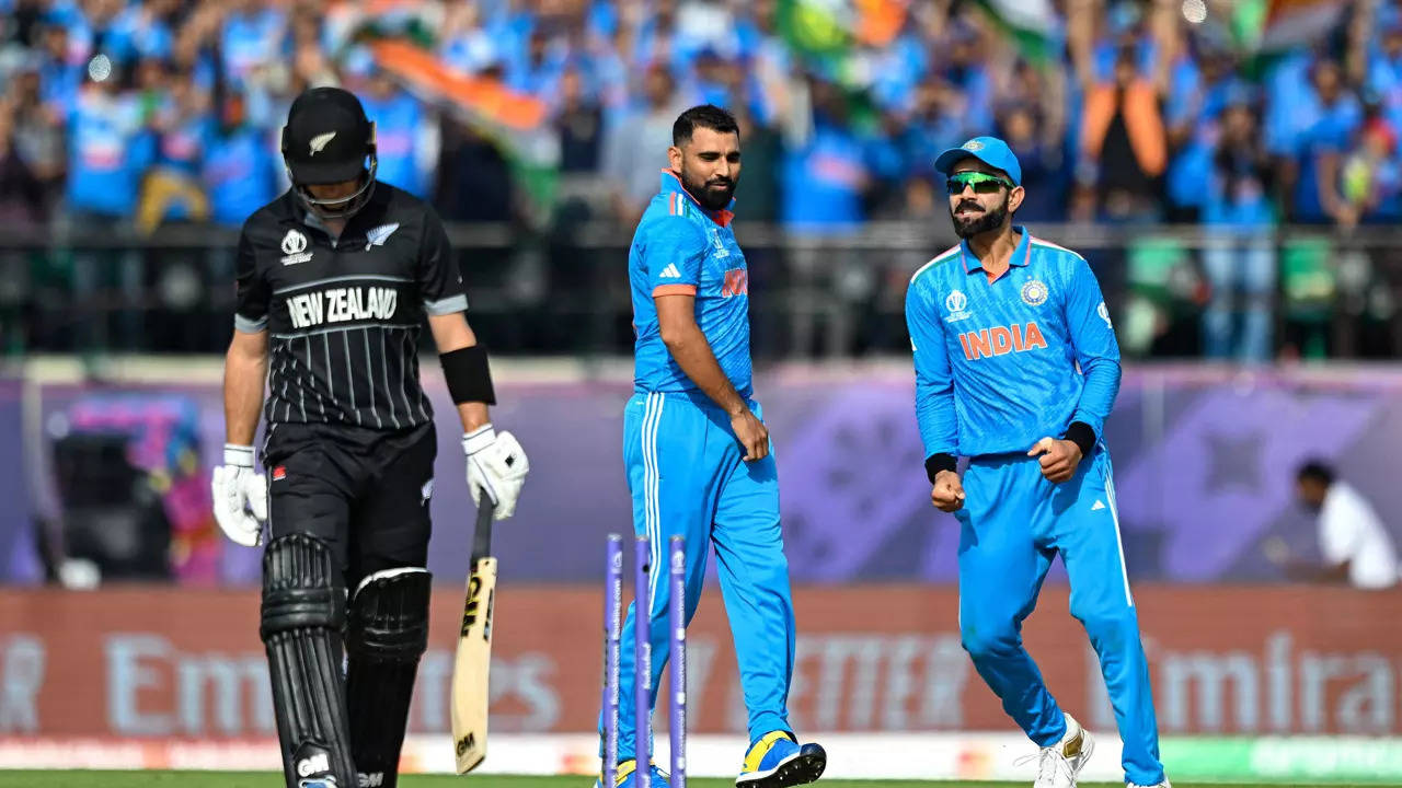 India star pacer Mohammed Shami made a triumphant return to the side in the ICC World Cup 2023 as he claimed a wicket off his first delivery in the mega tournament. Introduced into the attack, Shami, Shami, who wasn’t part of the playing eleven in the first four matches of the World Cup, dismissed New Zealand batsman Will Young to claim a wicket off the first delivery. The experienced pacer bowled a short-of-a-length delivery just outside off-stump. Young, who looked settled at the crease, tried to play towards off side, got an inside edge and the ball rattled the stumps.